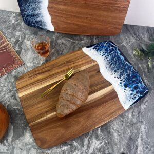 Dolons 2025 Acacia Wood Food Resin Cutting Board Kitchen Tray Wooden Dinner Tray