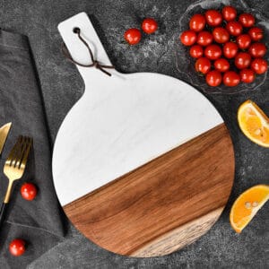 Planche à découper en marbre et bois d'acacia Dolons Bloc à découper en marbre