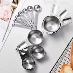 Ensemble de 14 cuillères et tasses à mesurer en métal, très populaires, en acier inoxydable (yh)
