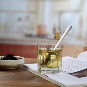 Infusore per tè sfuso con infusore per tè in acciaio inossidabile, cucchiaio per tè e vassoio raccogli-gocce