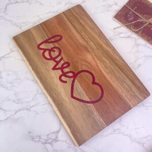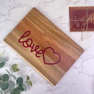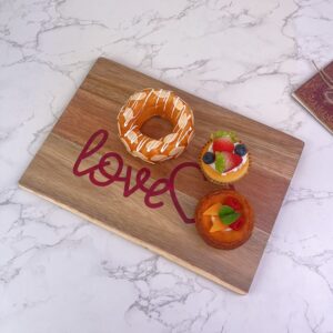 Dolons Tagliere in resina per San Valentino, Vassoio da cucina in legno di acacia, Vassoio da pranzo in legno