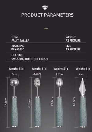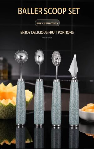 フルーツメロンボールスプーンセット ステンレススチール 4点セット スイカ カンタロープ アイスクリームカービングナイフ