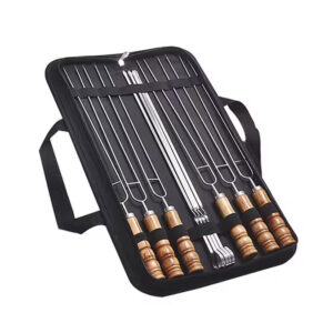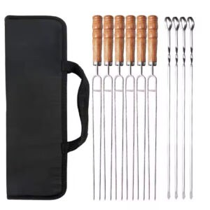 6개입 42cm U자형 스테인리스 스틸 바비큐 꼬치 4개입 40cm 바비큐 케밥 꼬치 나무 손잡이 바비큐 포크 휴대용 여행용 보관 가방【yh】