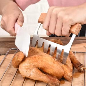 고기 분쇄기 도구 스테인리스 스틸 고기 커터 슬라이서 분쇄기 나무 손잡이 닭고기 고기 분쇄기 【yh】