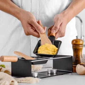 Hot Selling Mini Kaasgrillplaat met Massief Houten Handvat, Draagbare Raclette Pan, Mini Kaars Raclette Kaasgrill【yh】