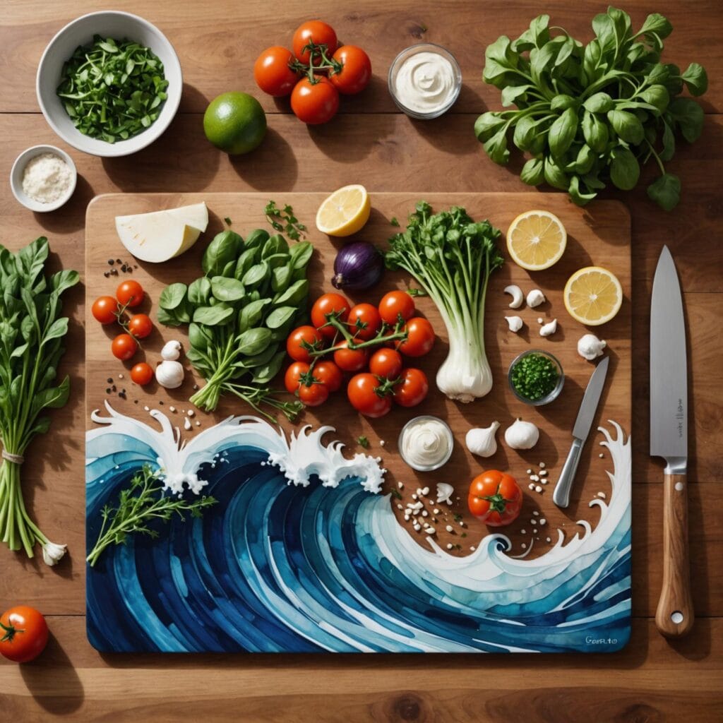 2.The Artistic Allure of Ocean-Inspired Wooden Chopping Boards