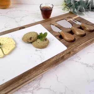 Dolons Marble Cheese Board Wood Charcuterie Boards Cheese Board Knife Set for Party Home