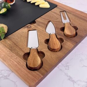 Wholesale Custom Logo Butter Stainless Steel Knife Cheese Tools Acacia Wooden Cheese Board and Knife Set