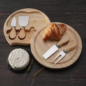 Wholesale Custom Logo Cheese Board Set Rubber Wood Round Cheese Cutting Board Set with Cheese Knife