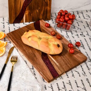 • Dolons Resin Cutting Board Acacia Wood Food Kitchen Tray Wooden Dinner Tray