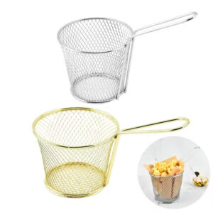 • New Arrival Stainless Steel round Food Presentation Tableware Mini French Fries Basket for Fried Food Durable Metal Design【yh】