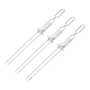 13 Inch Skewers Stainless Steel Double Pronged Roasting Sticks Reusable Skewer With Push Bar Metal BBQ Skewers【yh】