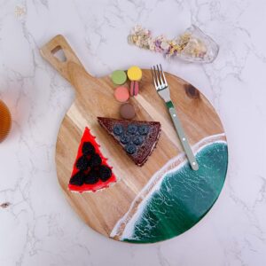 Dolons 2025 Acacia Wood Food Resin Cutting Board Kitchen Tray Wooden Dinner Tray