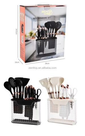 Conjunto de 12 utensílios de cozinha antiaderentes para chef com suporte para facas
