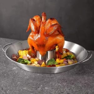 Suporte para forno de frango assado em aço inoxidável, suporte para lata de cerveja, suporte para frango, acessórios para grelhar verticalmente, cesta para vegetais